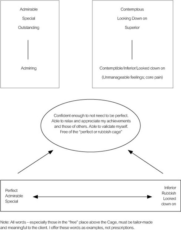 It is possible to convey to them (especially with the help of the “Narcissistic Triangle Diagram” below) that even when they achieve the Admirable state, this is precarious, and imprisons them rather than freeing them. A new option, with carefully chosen words which are meaningful to the patient, and different for each individual, can be drawn above the “Cage”.