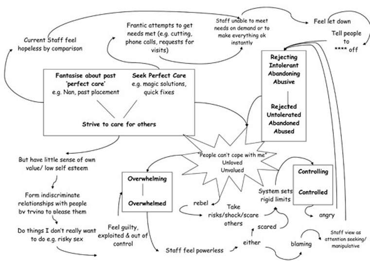CAT’s potential to understand aspects of relating on many levels offers a useful “exit” to the snags involved in understandings which distance us from the pain of disability, especially when that pain is communicated through violent behaviours to the self or other. It is tempting, when faced with sheaths of “incident forms” describing assaults, self injury and abuse, to revert to a “functional analysis” of a person’s behaviours. The frequency data is entered, the graphs compiled, the formulation constructed and the management strategies are prepared, usually to be delivered to staff supporting the person. We absent the person and cleanse the relational from the process under the guise of being objective, “scientist-practitioner” clinicians.