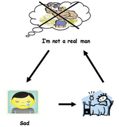 I worry that my penis is too small. I think I am not a ‘real man’. This makes me low. I stay in my room not feeling any better and feel bad about myself. I carry on worrying that my penis is too small.